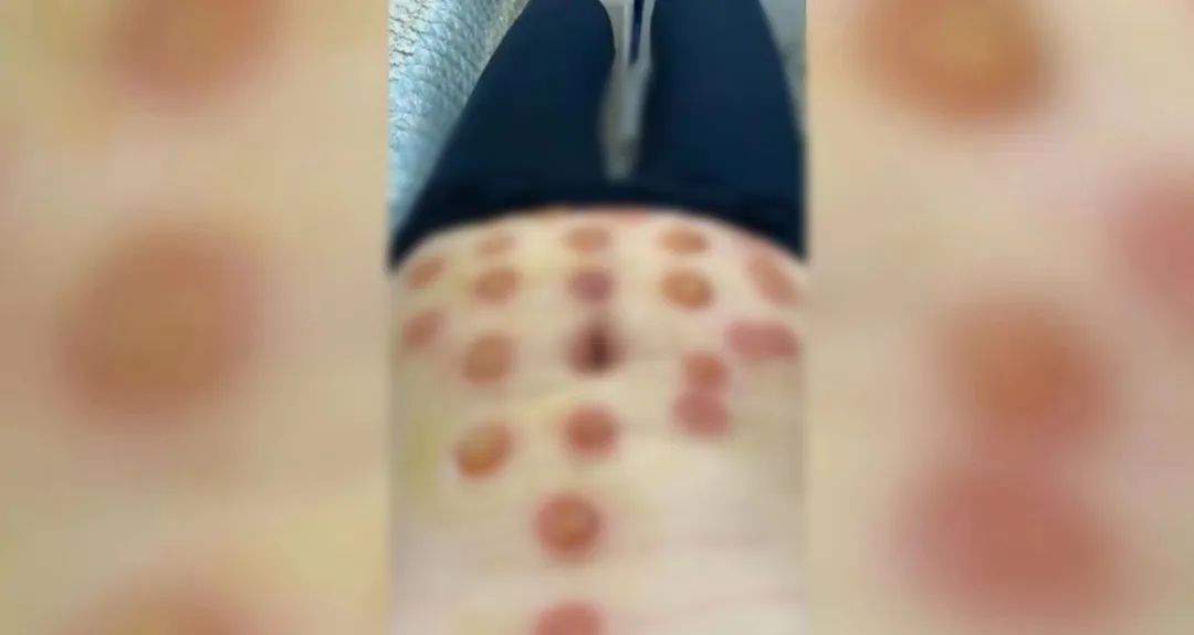 ▲女子做完艾灸之后的肚子,布满水泡。图源:山东广播电视台